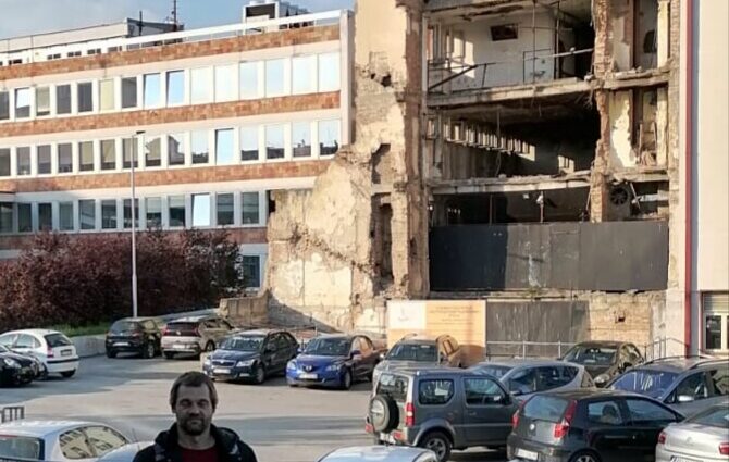 foto: autor u Památníku „humanitárního“ bombardování Bělehradu 1999